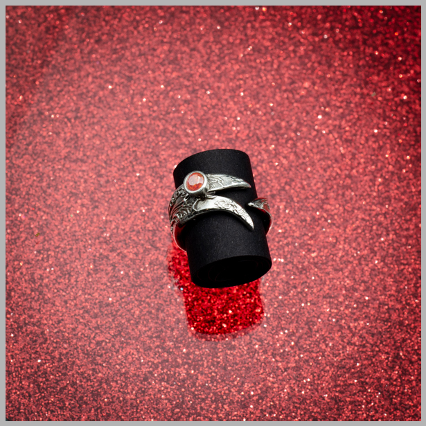 Ring "Manoya" mit Feder - rosa Zirkoniastein - Feinsilber - verkauft